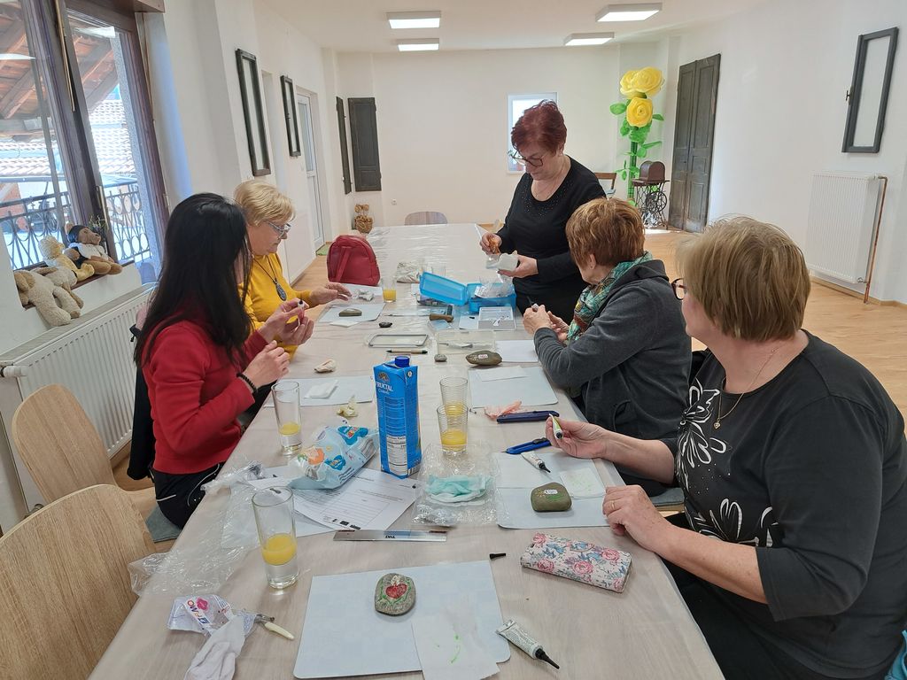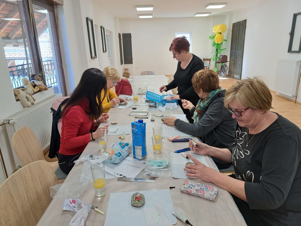 V četrtek, 16.3. 2023 smo med 10.00 in 12.00 v prostorih Medgeneracijskega centra izvedle še nadaljevalno delavnico izdelovanja nakita iz fimo mase. Pod budnim očesom Milene Klasič, predsednice KPD Šešče smo si izdelale unikatne broške. Da pa se v času, ko so se broške "pekle" v peči, nismo dolgočasile, smo naredile svoje svečke iz kamna. Vsaka udeleženka si je svoj kamen porisala po svoje. Milena nam je pokazala, kako in s katerimi barvami se to dela.