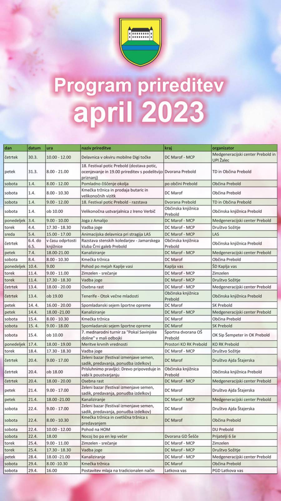 Napovednik dogodkov v mesecu aprilu v Občini Prebold