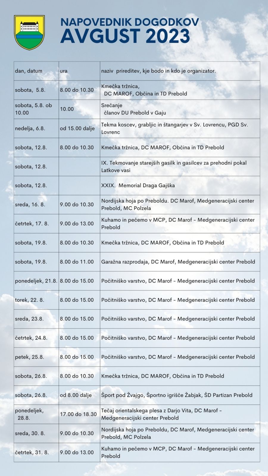 Napovednik dogodkov za mesec avgust