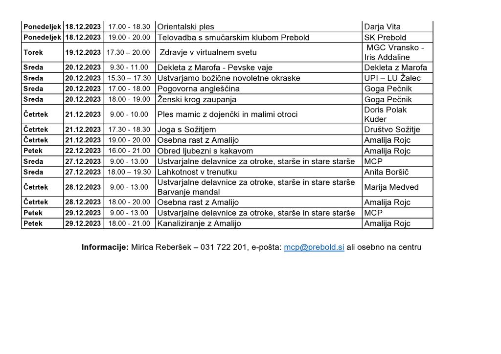 Informacije: Mirica Reberšek - 031 722 201, e-pošta: mcp@prebold.si ali osebno na centru.