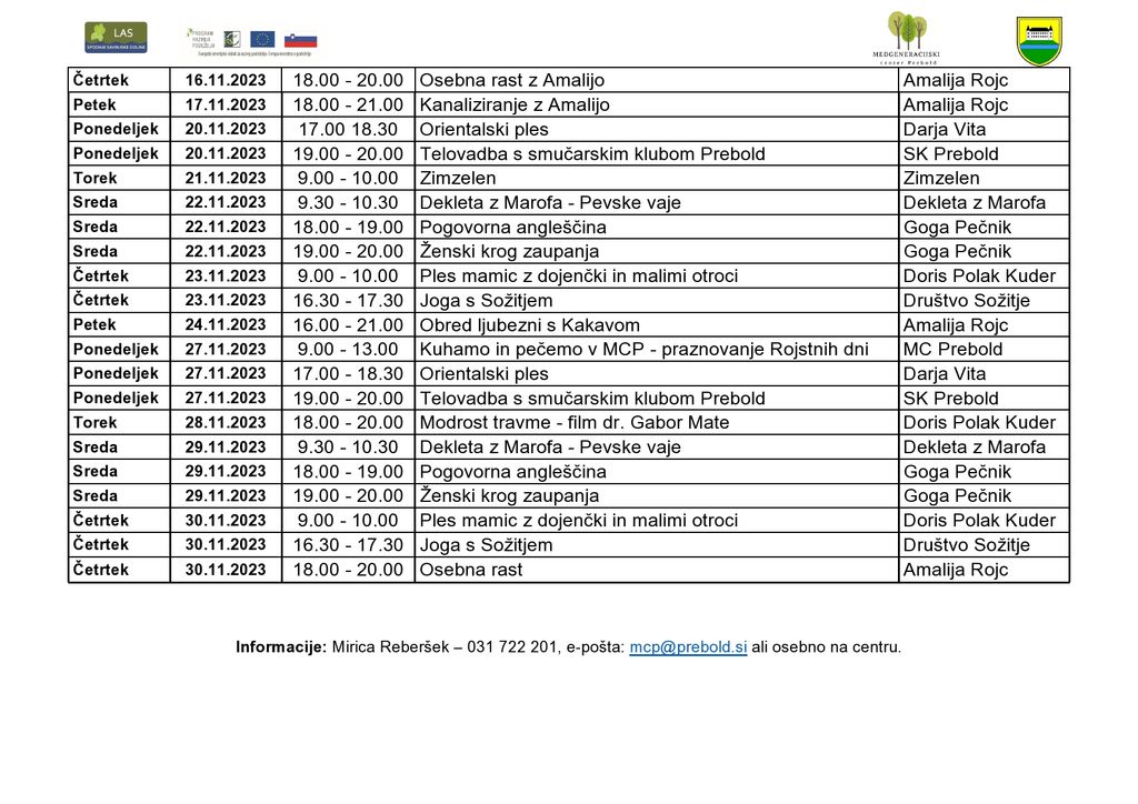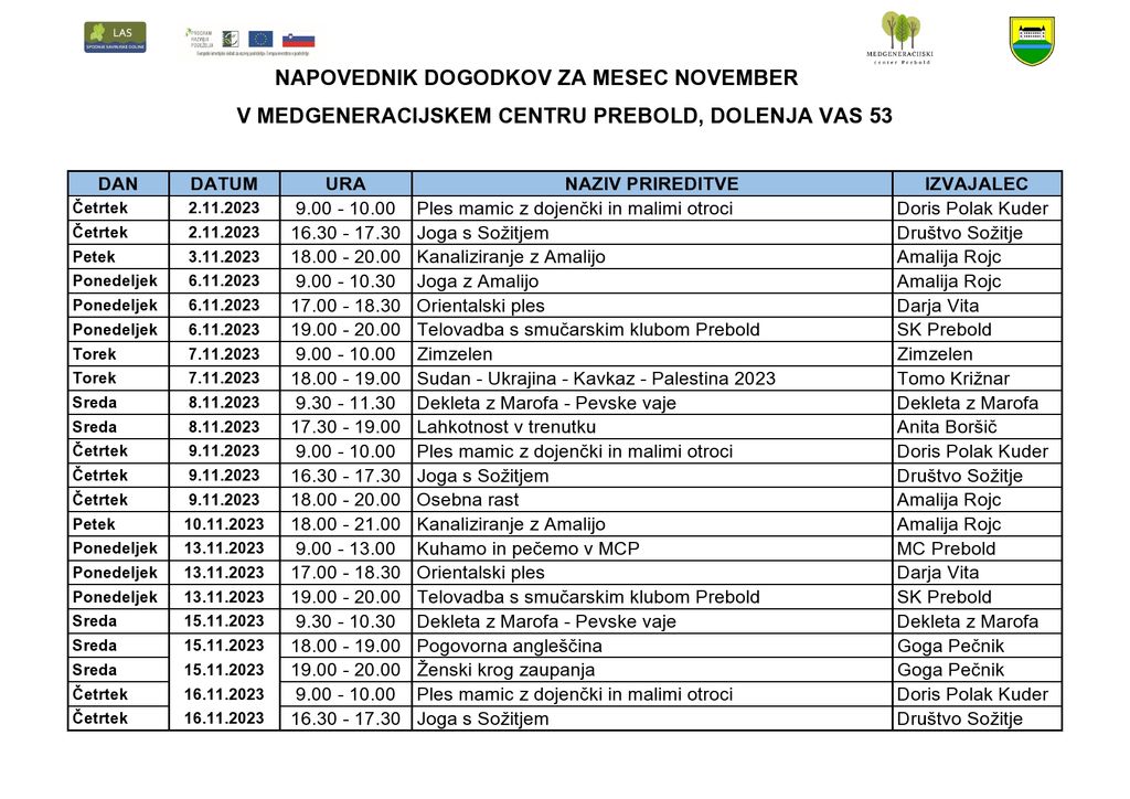 Vjudno vabljeni, da si pogledate mesečni program Medgeneracijskega centra Prebold, za mesec november.