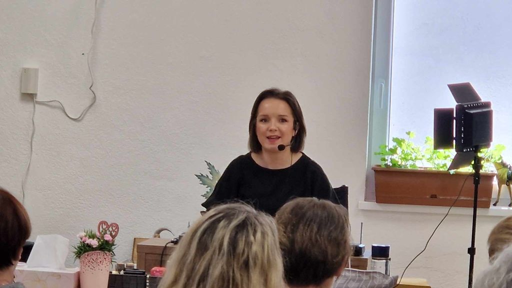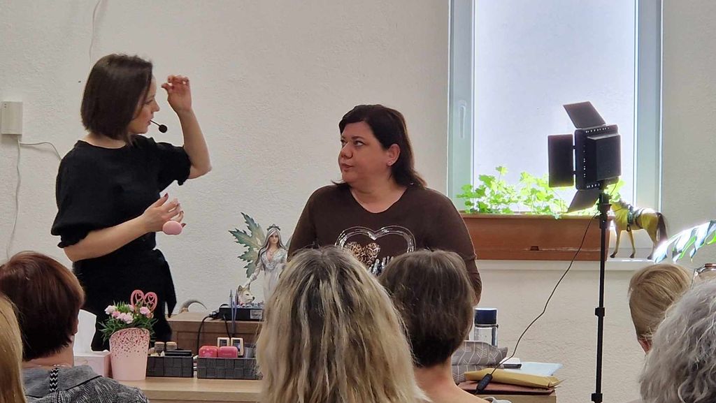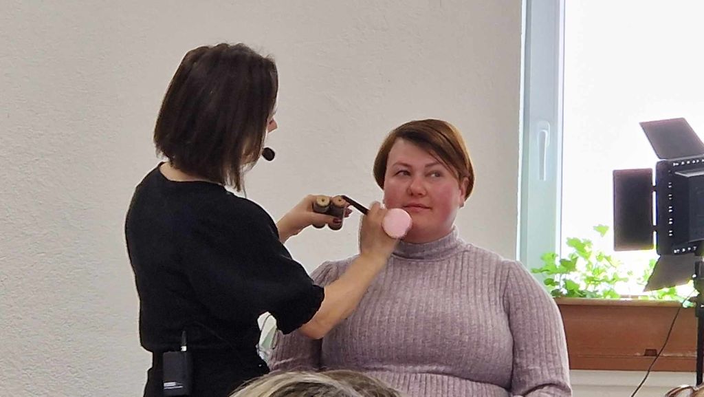 Naša gostja, simpatična in izkušena vizažistka Anja Farčnik, nas je navdušila s svojim prijaznim pristopom in bogatim strokovnim znanjem. Ob sproščenem pogovoru nam je nazorno predstavila bistvene korake ličenja, poudarila pomembnost nege kože ter posebej izpostavila zlato pravilo: »Manj je več!« Ličenje naj bo naravno, nežno in predvsem takšno, da se vsaka ženska počuti dobro, samozavestno in prijetno v svoji koži.