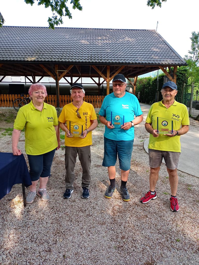 DU Prebold je izvedlo turnir v balinanju na igrišču upokojencev. Nastopile so štiri ekipe DU Tabor, DU Vransko in moška ter ženska ekipa DU Prebold. V prijateljskem in družabnem srečanju je zmagala ekipa Tabora,druga je bila ekipa Vransko, tretja ekipa moški Prebolda in četrta ekipa ženske Prebold. Čestitke vsem nastopajočim.