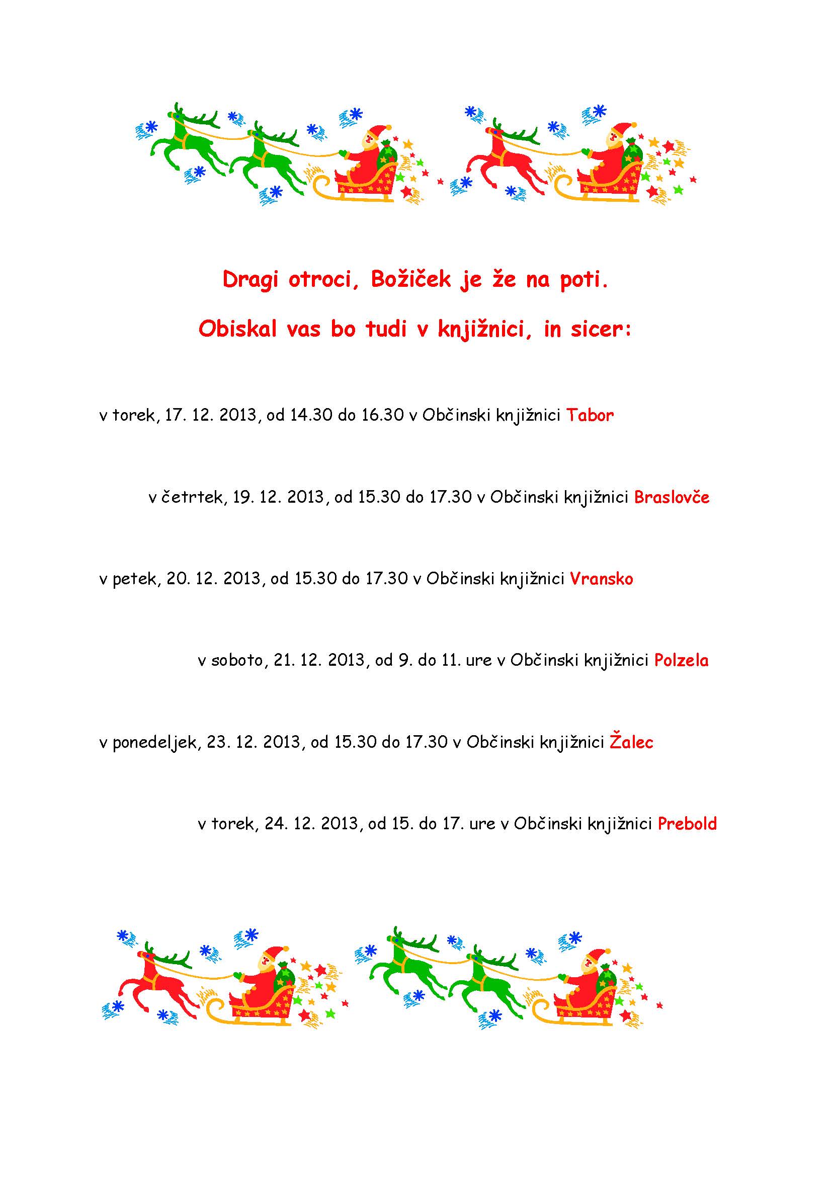 - v petek, 20. 12. 2013, od 15.30 do 17.30 v Občinski knjižnici Vransko,