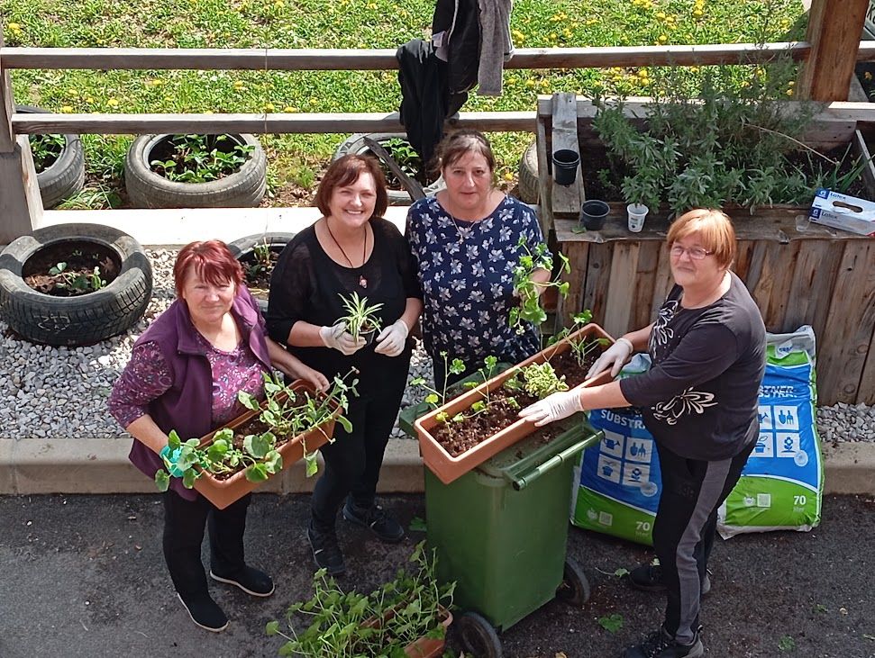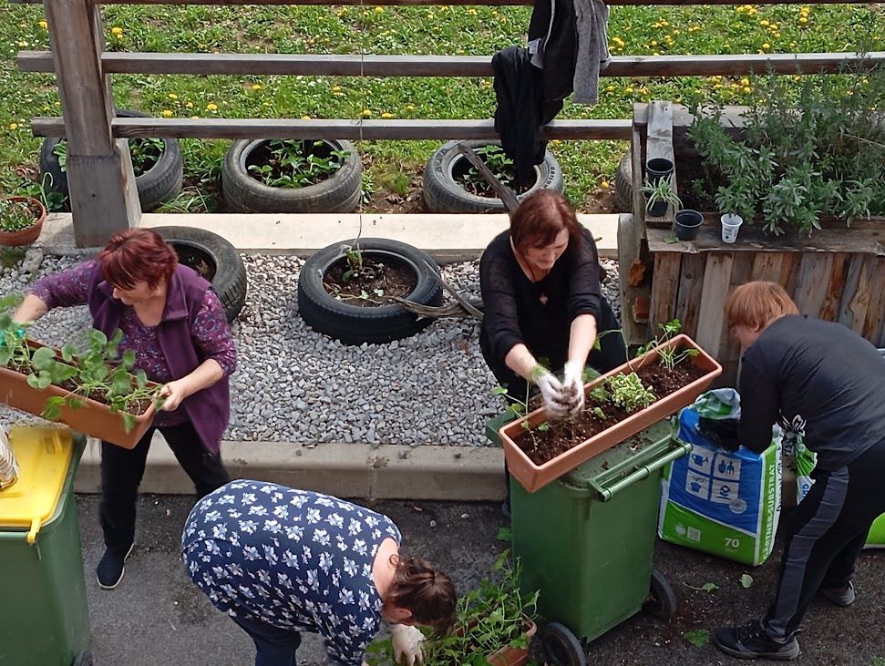 A sreda ni bila le kulinarično obarvana. Medtem ko je v kuhinji dišalo, so pridne roke naših prostovoljk poskrbele, da bo naš center tudi letos poleti spet zacvetel. Presajale smo rožice, ki smo jih vzgojile kar same, s srcem, potrpežljivostjo in željo, da prostor okoli nas žari v barvah narave.