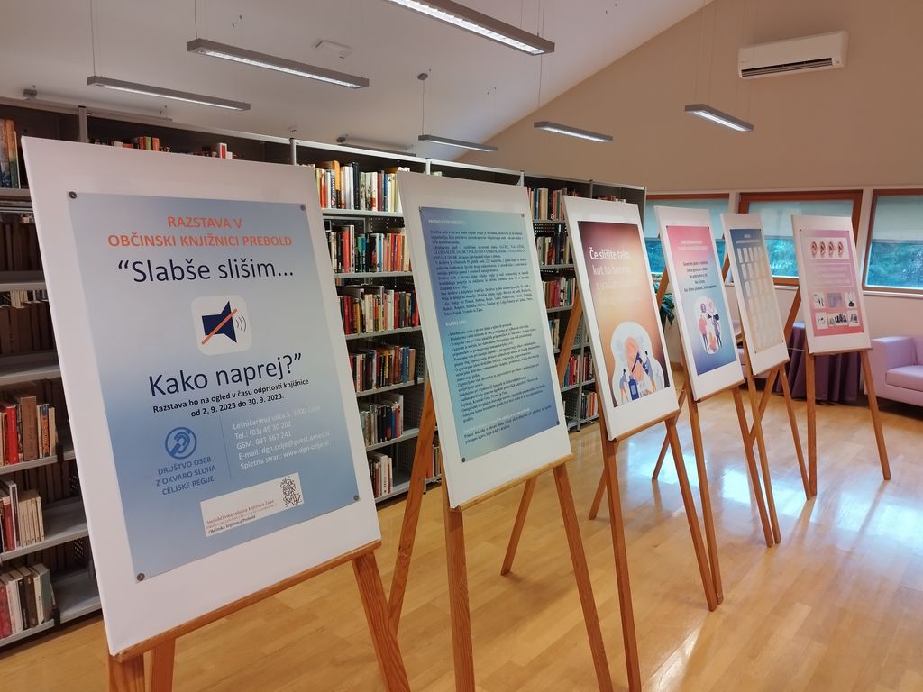 Društvo oseb z okvaro sluha celjske regije je v Občinski knjižnici Prebold pripravilo razstavo z naslovom »Slabše slišim … Kako naprej?«, ki bo na ogled od 2. do 30. septembra 2023 v času odprtosti knjižnice.