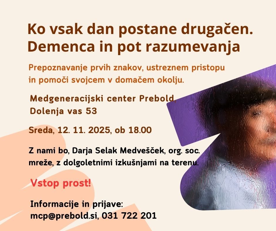 Vabimo vas na predavanje o prepoznavanju prvih znakov demence, ustreznem pristopu in pomoči svojcem v domačem okolju