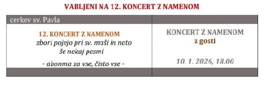 Vljudno vabljeni na 12. koncert z namenom ki bo v soboto, 10. januarja ob 18. uri v Cerkvi Sv. Pavla.