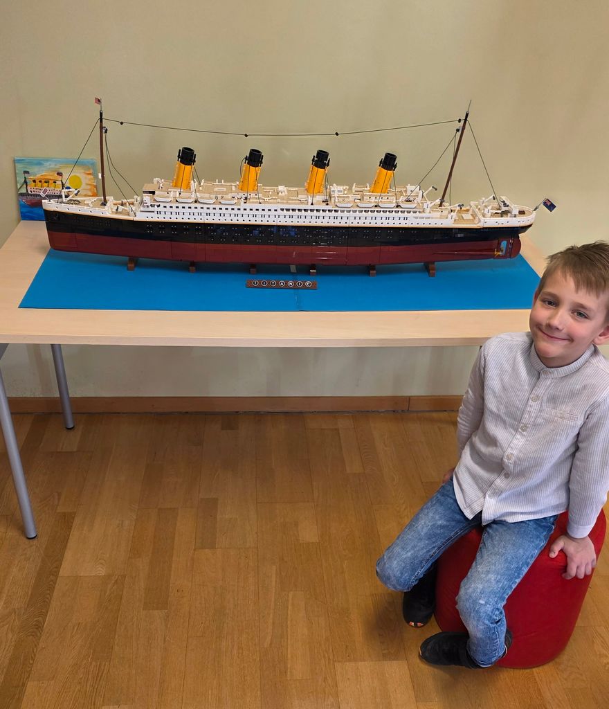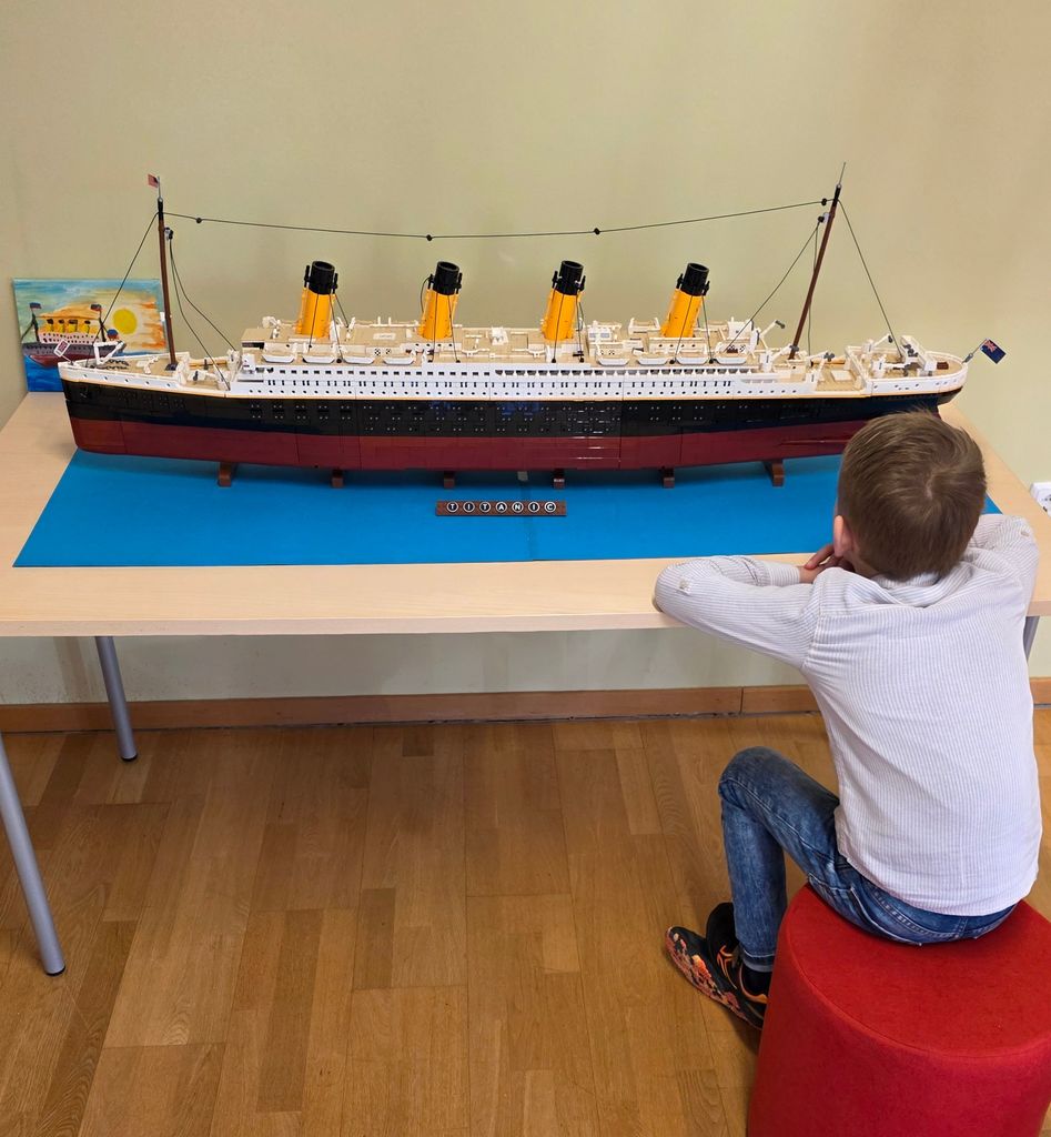 Ob tej priložnosti v Občinski knjižnici Prebold svojo lego ladjo Titanik razstavlja Žan Kovač. Nad lego kockami je navdušen že od svojega drugega leta. Zelo ponosen je, ko mu uspe sestaviti tudi zahtevnejše lego stvaritve. Kot velik navdušenec ladje Titanik je bil poln vzhičenosti in novih idej oktobra lani, ko je za svoj sedmi rojstni dan prejel ogromno lego ladjo Titanik. S pomočjo mamice, atija in drugih sorodnikov se mu je tako uresničila dolgoletna želja. Ker je bilo sestavljanje lego Titanika dolgotrajno in zelo naporno, mu je na pomoč priskočil ati, ki mu je pomagal pri najzahtevnejših detajlih. Sestavljanje je trajalo pet dni, po tri do štiri ure na dan, včasih tudi dolgo v noč. Žanov lego Titanik si lahko skupaj z njegovo risbico ogledate v času odprtosti preboldske knjižnice do 12. aprila 2025.