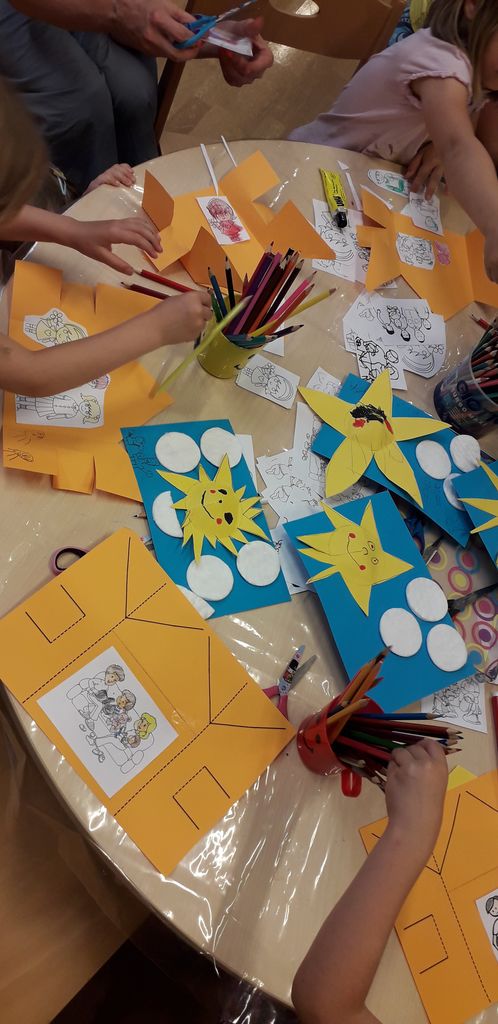 ustvarjalnem delu pravljičnega druženja smo izdelali sončne razglednice za kakšen poletni pozdrav in