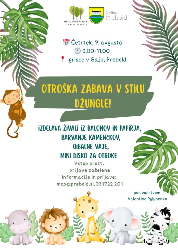 PRIDRUŽITE SE NAM V GAJU PREBOLD, NA OTROŠKI ZABAVI V STILU DŽUNGLE!
