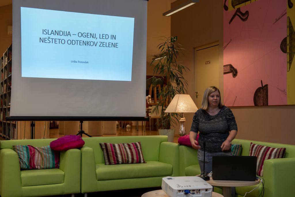 Dežela kontrastov, tisočerih odtenkov zelene in zanimivih barvnih kulis jo je prevzela prav s svojimi nasprotji, ki se ves čas prepletajo. Ogenj in led, vroče in hladno … Temu sledi tudi vreme. Na trenutke 15 stopinj, že čez nekaj trenutkov se temperatura spusti pod ničlo. Osupljiva pokrajina s hrumečimi slapovi, vulkanskimi pojavi, prijaznimi domačini in prelepimi ribiškimi vasicami. Vse to so nam neznane znamenitosti, ki so jo preprosto nagovorile, da jih še kdaj ponovno obišče in razišče, je razkrila obiskovalcem knjižnice.