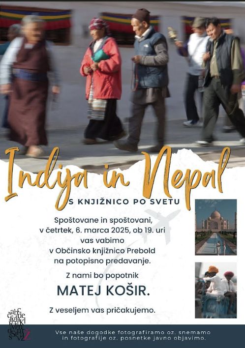 v četrtek, 6. marca 2025, ob 19. uri vas vabimo v Občinsko knijžnico Prebold na potopis s popotnikom Matejem Koširjem, ki bo z nami delil svoja doživetja iz Indije in Nepala.
