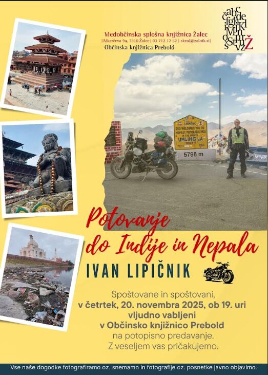 popotnik, fotograf, domačin Ivan Lipičnik je bil z motorjem v Indiji in Nepalu, kar bo z nami v sliki in besedi delil v Občinski knjižnici Prebold v četrtek, 20. novembra 2025, ob 19. uri.