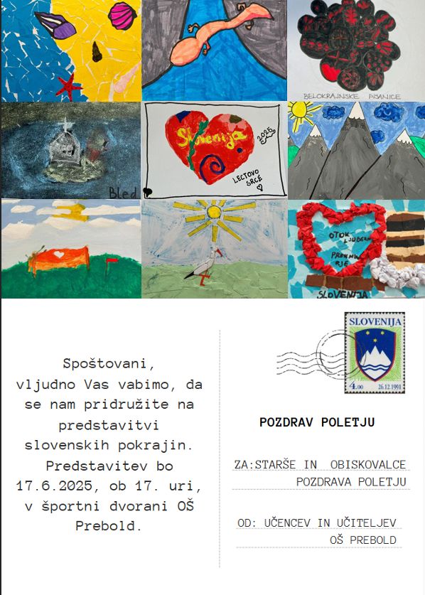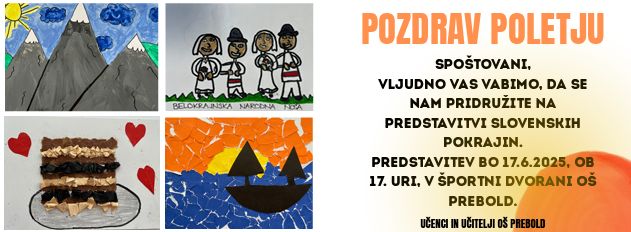 OŠ Prebold vabi na zaključno prireditev z naslovom Pozdrav poletju, ki bo 17. 6. ob 17.00 uri v Športni dvorani OŠ Prebold.