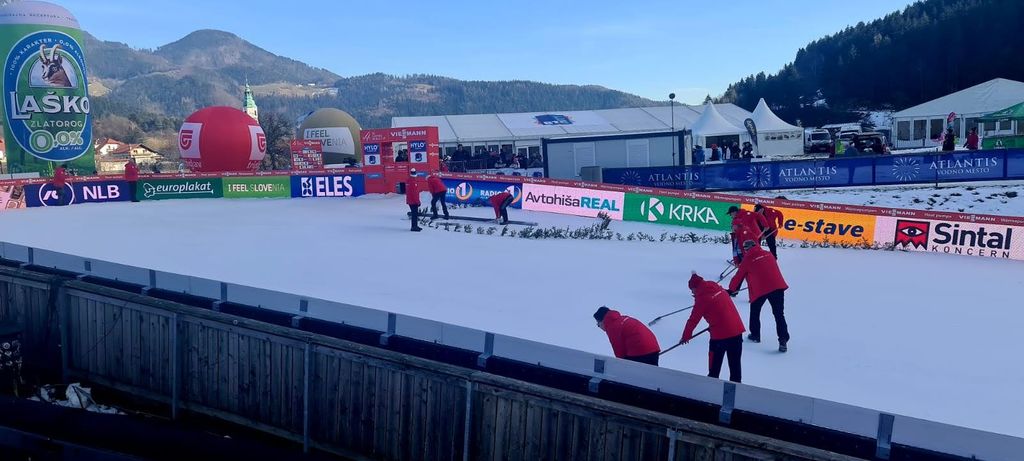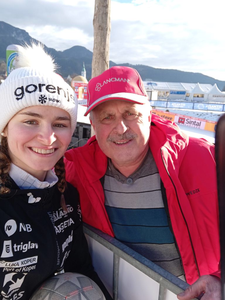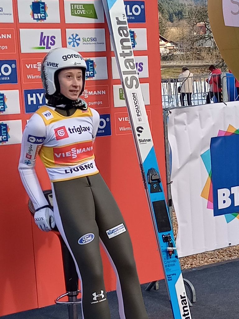 Nika Prevc nedelja 28.01. prvo mesto in Nika Križnik tretje mesto.