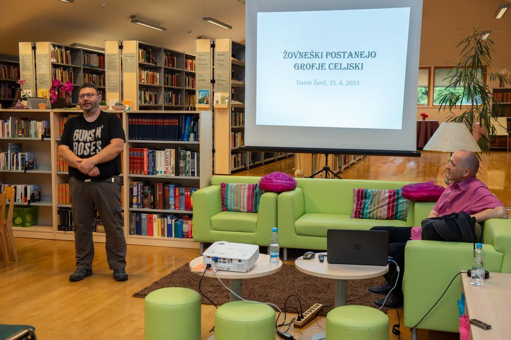 V četrtek, 15. junija 2023, smo v Občinski knjižnici Prebold v sodelovanju z Zgodovinskim in narodopisnim društvom Prebold z zanimanjem prisluhnili mag. Damirju Žeriču, zgodovinarju in višjemu kustosu v Pokrajinskem muzeju Celje. Uvodni nagovor s predstavitvijo gosta sta zbranim namenila knjižničarka mag. Lea Felicijan in zgodovinar mag. Uroš Herman, navzoča je bila tudi predsednica Zgodovinskega in narodopisnega društva Prebold Nuša Strgar.