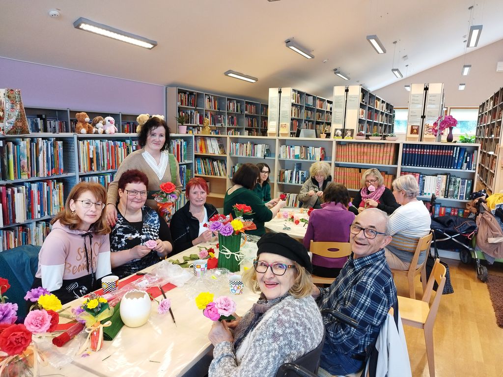 V soboto, 11. marca 2023, smo se v Občinski knjižnici Prebold ob prihajajoči pomladi posvetili nadvse prijetnemu opravilu – izdelovanju rož iz krep papirja. Delavnico je vodila Simona Guček v sodelovanju z Združenjem multiple skleroze Slovenije. Organizacija letos praznuje 50-letnico delovanja, kar je še dodaten razlog za številne dejavnosti, ki jih že vseskozi izvajajo njeni člani in ob tem širijo pozitivno sporočilo, da je življenje lepo.