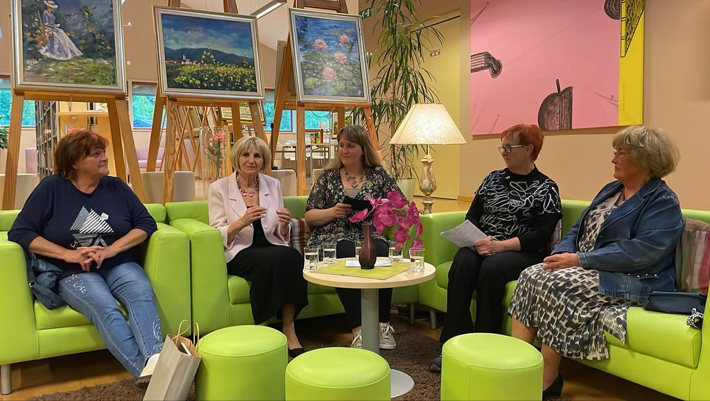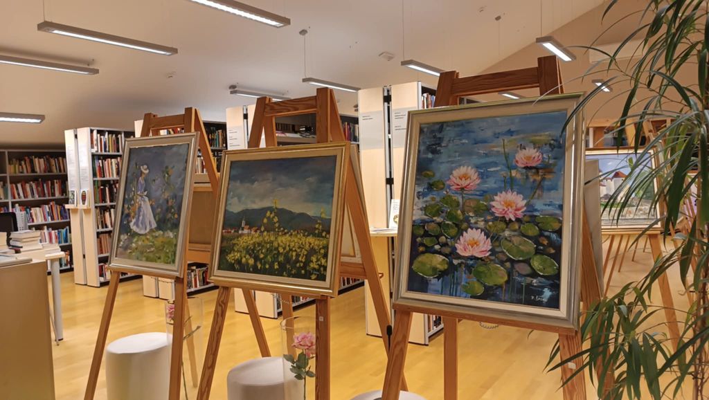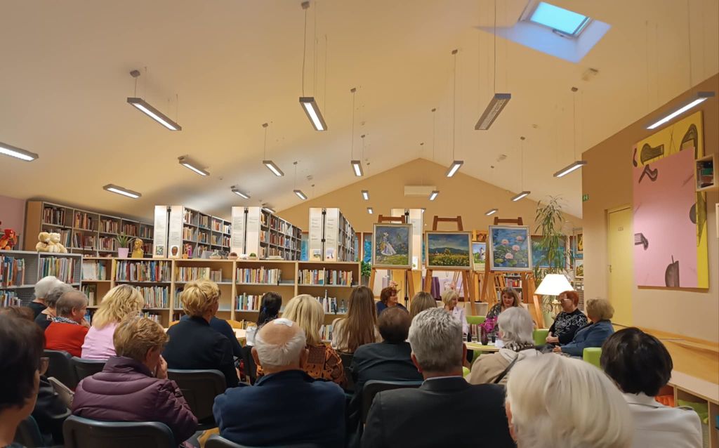 »Ko poteze čopiča pripovedujejo zgodbe, se v svetlobi platna razodevajo trenutki časa, ujeti med spominom in domišljijo. Pred nami ni le razstava, pred nami je osebna zgodba, stkana iz utrinkov, trenutkov, ki bi sicer neopazno zdrsnili mimo,« je uvodoma dejala knjižničarka mag. Lea Felicijan in k besedi povabila razstavljavko Franico Šporn, vodjo likovne sekcije KUD Polzela Sonjo Jezernik, dolgoletno prizadevno članico likovne sekcije KUD Polzela Mojco Korošec in animatorko likovnega krožka Univerze za tretje življenjsko obdobje Žalec Lidijo Tamše. Skozi pogovor smo se sprehodili po razstavljavkini bogati ustvarjalni poti, spoznali smo številne dejavnosti organizacij, v katere se z največjo vnemo vključuje in tke mrežo povezovanja z likovnimi prijatelji. Večer sta s hudomušno pesmijo o doživljanju barv in avtorsko poezijo obogatili Stanka Kopušar in Zdenka Kolenc.