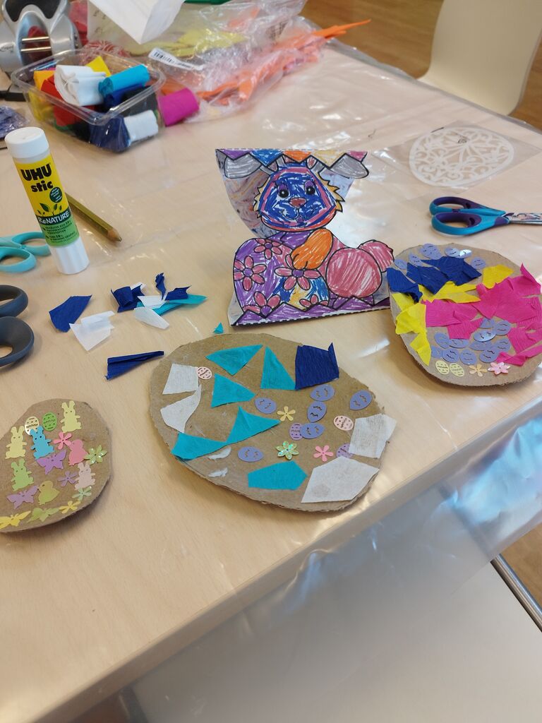 Velika noč ni le praznik, zapisan v koledarju, temveč je čas prebujanja. Tako kot narava znova zeleni, so tudi otroci s svojimi rokami prebujali bele površine papirja, jim vdihovali življenje in pomen. Velikonočna jajčka, krhka in hkrati simbolično močna, so pod njihovimi prsti postajala poslikana z živimi vzorci, črtami, pikami in zgodbami, ki jih odrasli pogosto ne znamo več videti. Tudi ustvarjeni velikonočni zajčki so bili v njihovih očeh igrivi, skrivnostni in radodarni, prinašalci drobnih presenečenj.