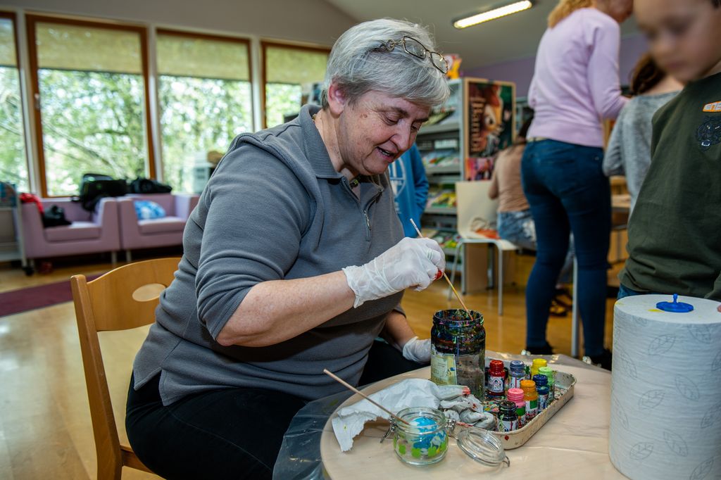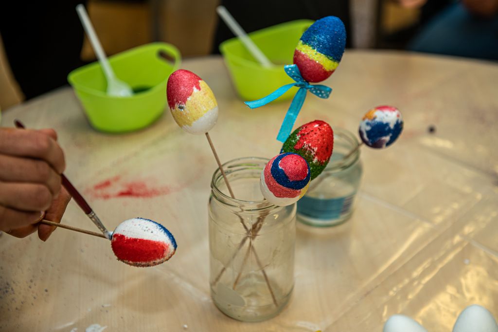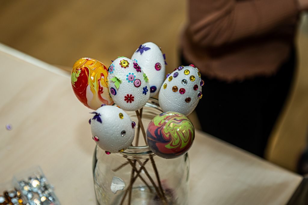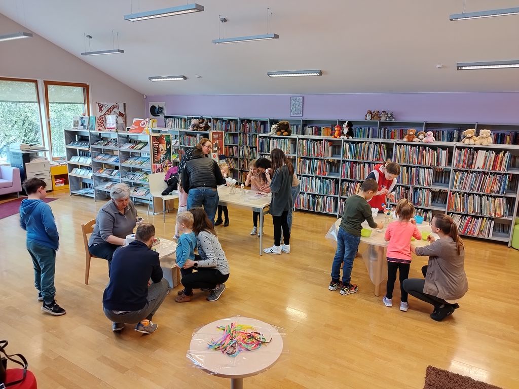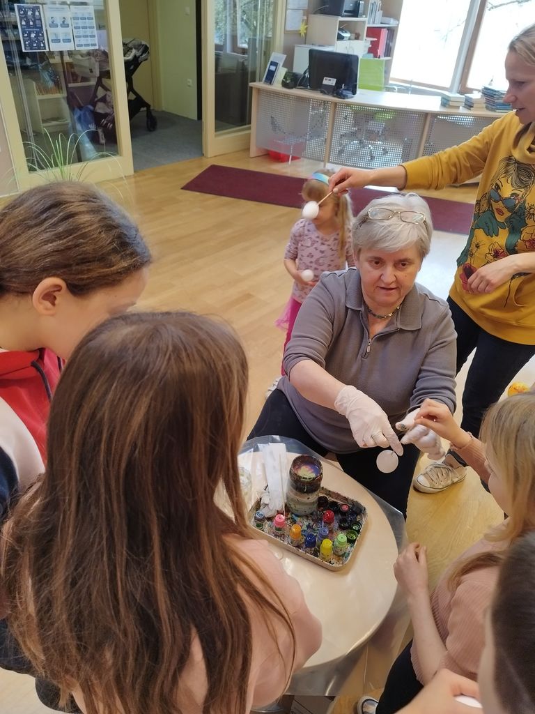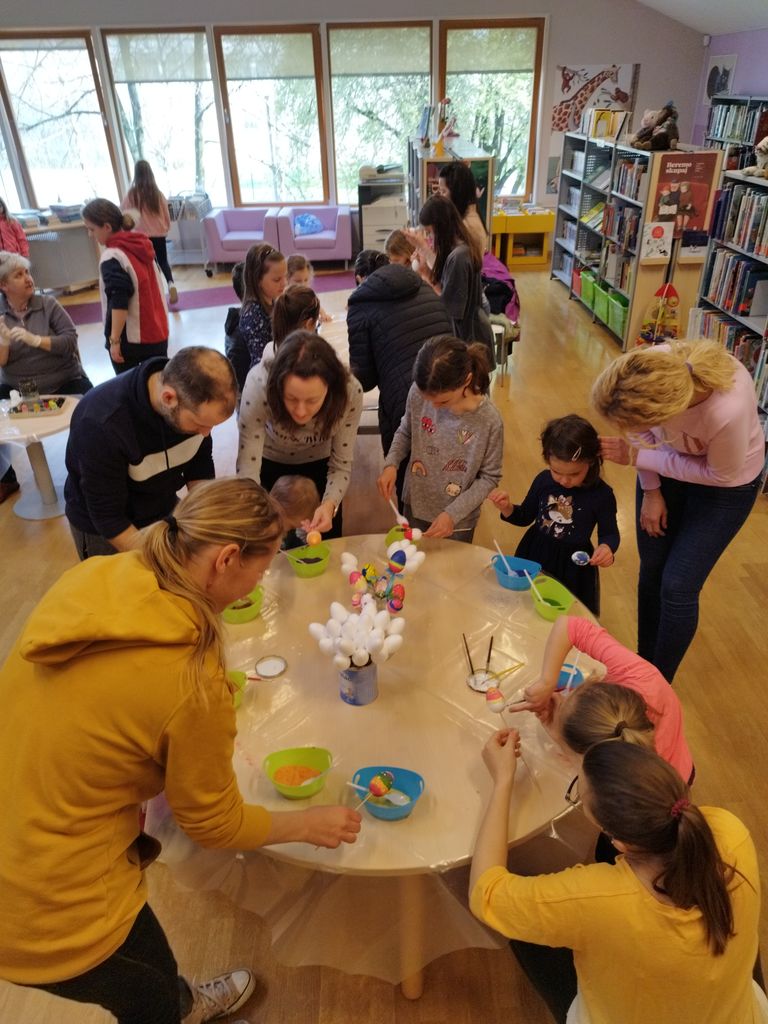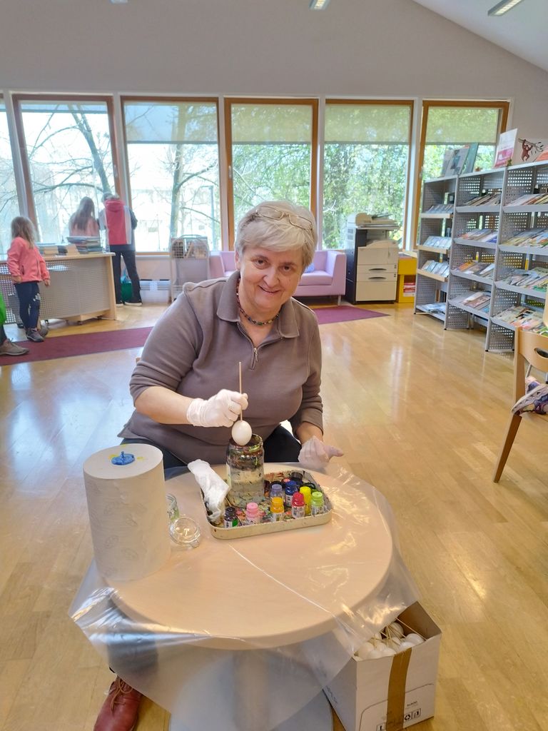 V soboto, 1. aprila 2023, smo se v Občinski knjižnici Prebold pripravljali na bližajoče se velikonočne praznike. Pod vodstvom Irene Verbič iz Medobčinske splošne knjižnice Žalec so mali nadobudneži in vsi tisti, ki radi gredo z domišljijo na potep, radovedno sledili tehnikam posipanja z barvnim peskom, lepljenja perlic, mešanja barv, marmoriranja. Nastalo je kar 200 izvirnih, živopisanih dekorativnih jajc, ki bodo kot simboli pomladi, prijateljstva in ljubezni popestrili marsikateri dom in nam polepšali skupne praznične trenutke.
