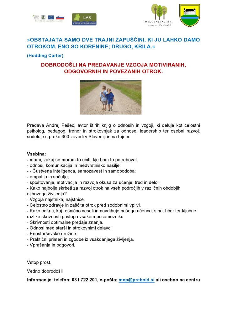 Dobrodošli na predavanje vzgoja motiviranih, odgovornih in povezanih otrok.