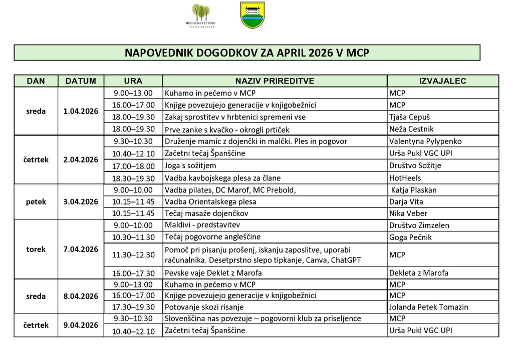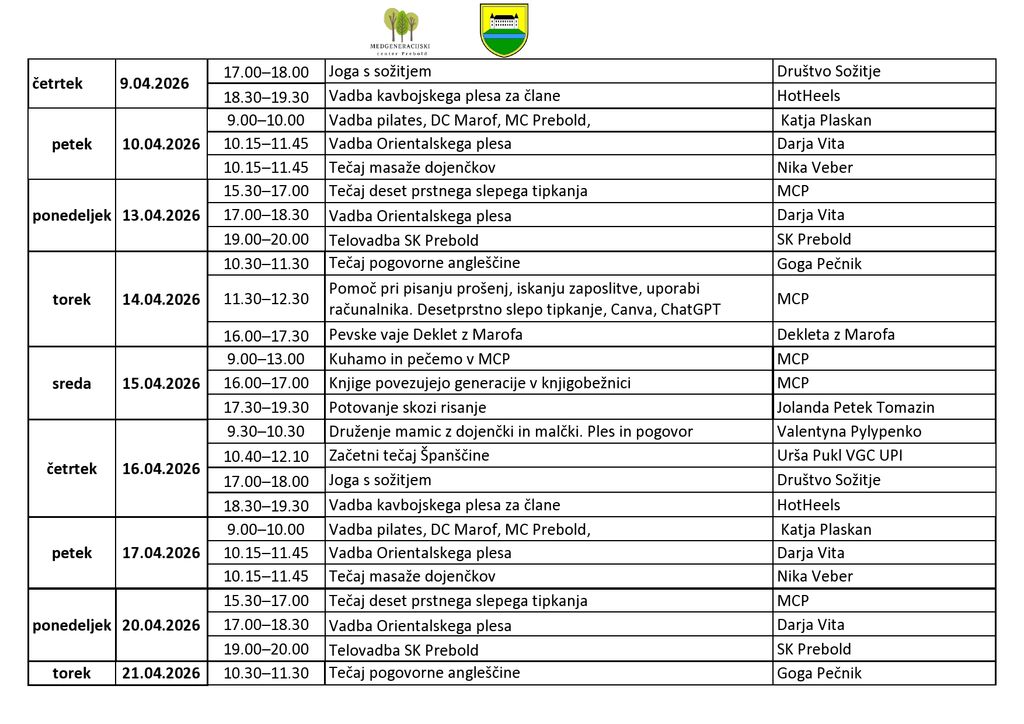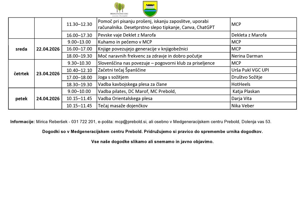 Informacije: mcp@prebold.si, 031 722 201, ali na centru