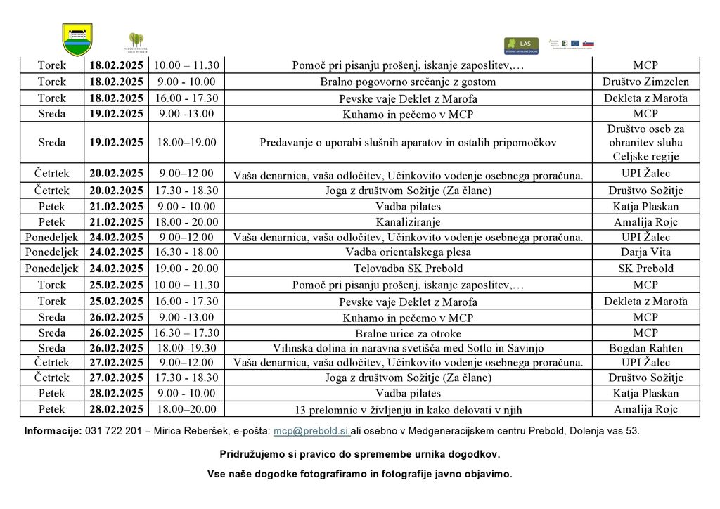 Informacije in prijave: 031 722 201- Mirica Reberšek, e-pošta: mcp@prebold.si, ali osebno na centru.
