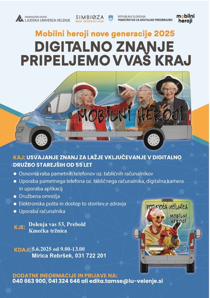 Informacije: 031 722 201, mcp@prebold.si