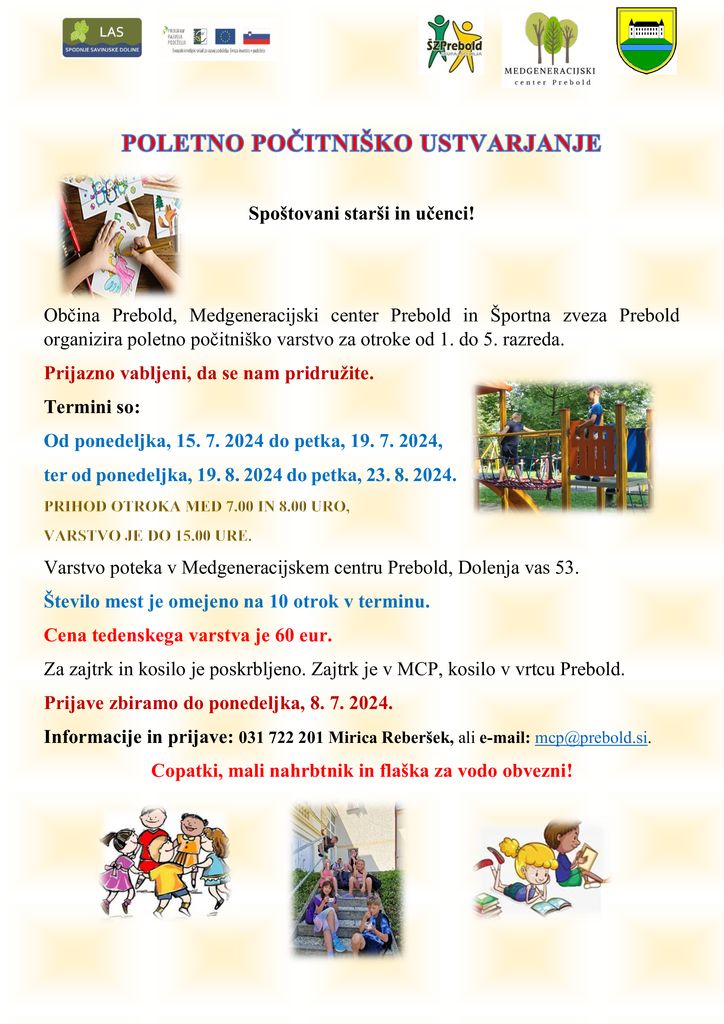 V Medgeneracijskem centru Prebold, kot vsako leto, tudi letos pripravljamo počitniško varstvo otrok,