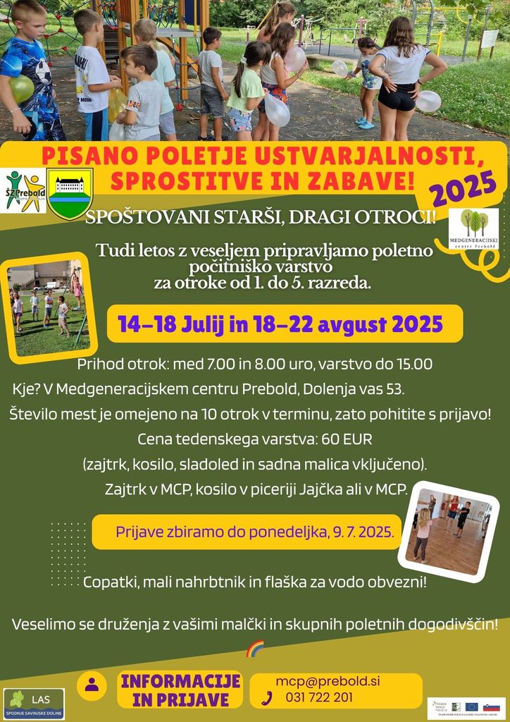 V Medgeneracijskem centru Prebold tudi letos pripravljamo počitniško varstvo za otroke od 1. do 5. razreda osnovne šole, ki bo polno ustvarjanja, igre, smeha in novih prijateljstev.