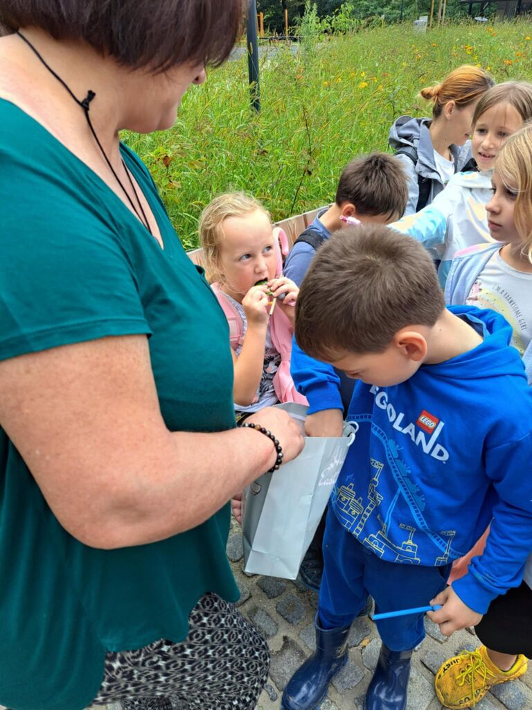 Peti, hkrati pa tudi zadnji dan našega avgustovskega počitniškega varstva, je bil nekaj posebnega. Končno smo se odpravili na lov na zaklad z Doris Polak Kuder, ki je s seboj pripeljala hčerkici – skupaj so poskrbele za zanimivo in razigrano dopoldne.