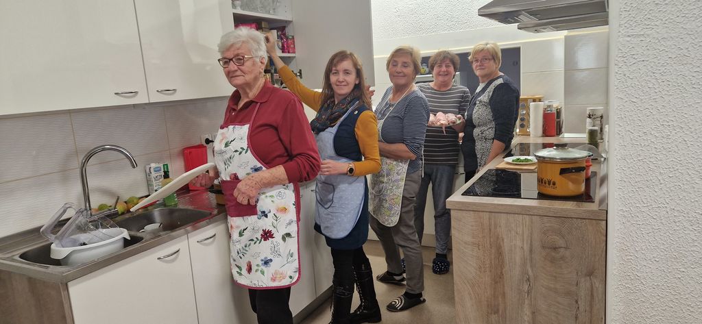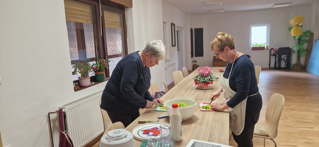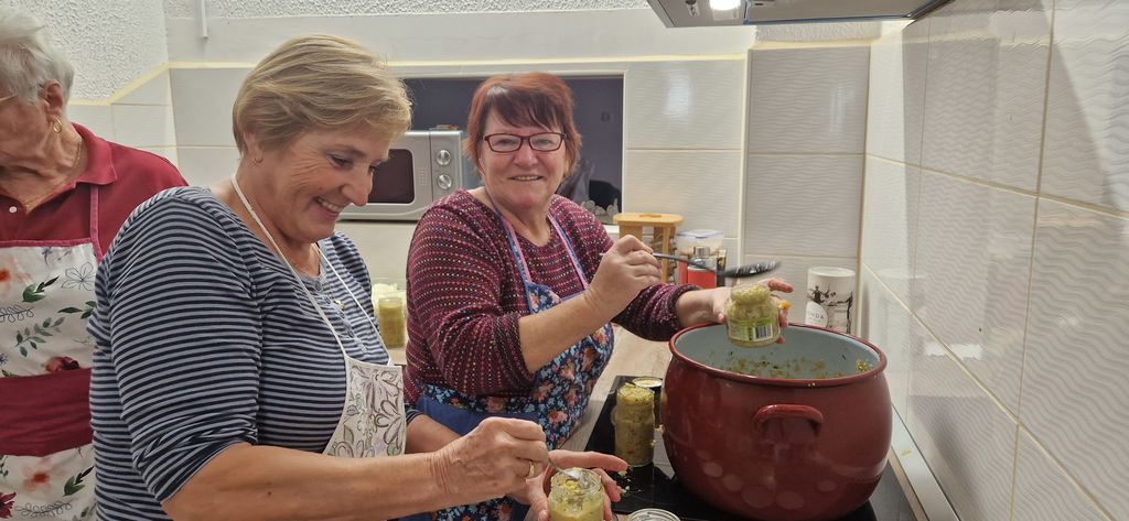 Naše pridne udeleženke so zelo kulinarično ustvarjalne. Da bi izkoristile preostali zeleni paradižnik, so se odločile narediti čudovit namaz. Z veseljem so se podale v novo kulinarično dogodivščino, dodajajoč svoj edinstven pridih pripravi. S tako vnemo in kreativnostjo smo še bolj obogatili našo kuharsko srečanje.