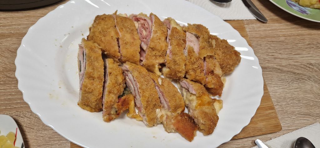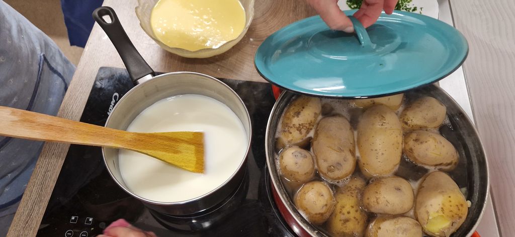 Skupaj smo pripravili izvrstne polnjene puranje prsi in čudovito krompirjevo solato. Kot sladico smo si privoščili okusno pijano nevesto. Seveda smo poskrbeli tudi za okusno juhico, kateri smo dodali čemažev pesto, da smo okusno začinili to edinstveno doživetje.