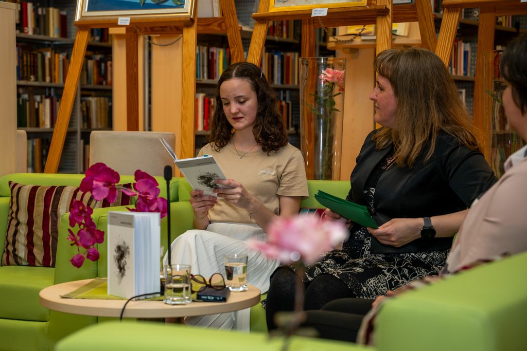 Srednješolka Gimnazije Celje – Center Ana Kumperger je ljubiteljica umetnosti. Obožuje slikanje z akvarelnimi barvami, igra klarinet in klavir, nič pa je ne prevzema tako kot pisanje poezije. Pri pesnjenju je vedno bolj uspešna, med drugim je lani postala zmagovalka Festivala mlade literature Urška 2023. »Nekaj v meni išče svetlobo, pot iz globokih čeri. Grize kosti in tkiva, da bi prišlo do srca, izdolblo vanj majhno zarezo. A kako ve, da je tam luč?« To je le eden izmed verzov nadarjene pesnice. »Rada posegam po nekoliko temačnejših temah, kot so minljivost, smrt, pozabljanje in spomini, saj se mi zdi, da s pisanjem o tem spoznavam samo sebe, kopljem po skritih kamricah. Blizu mi je tudi impresionistična poezija. Poezija je moj pobeg v vzporedni svet, način soočanja s čustvi in občutenji sveta okrog mene,« je še povedala v pogovoru, ki ga je vodila knjižničarka Lea Felicijan.