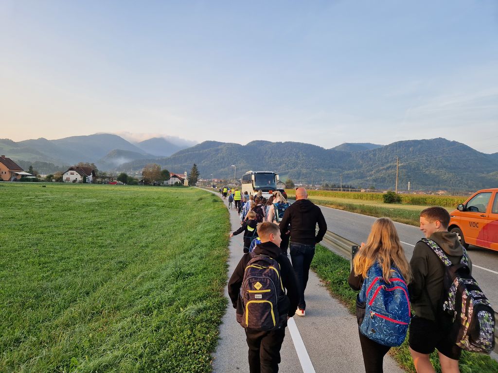 Dan je bil poseben, saj smo začeli teden mobilnosti. S skupino prostovoljcev smo se z veseljem odpravili spremljati otroke v šolo, pridružilo se nam je še nekaj staršev otrok.