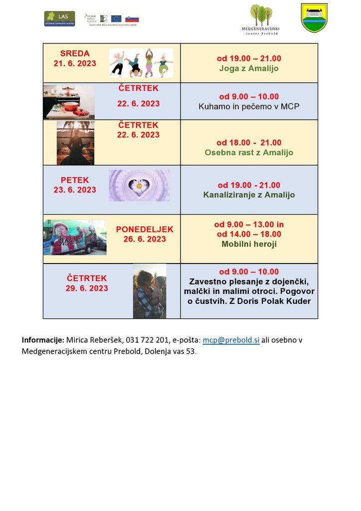 Informacije: na telefon: 031 722 201, e-pošto: mcp@prebold.si ali osebno v Medgeneracijskem centru Prebold.