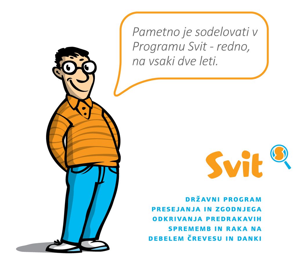Program Svit je državni preventivni presejalni program, ki vabljenim omogoča, da pravočasno preverijo, kako je z zdravjem njihovega debelega črevesa in danke. Vanj so vključeni prebivalci in prebivalke Slovenije med 50. in 74. letom starosti, ki imajo urejeno obvezno zdravstveno zavarovanje.
