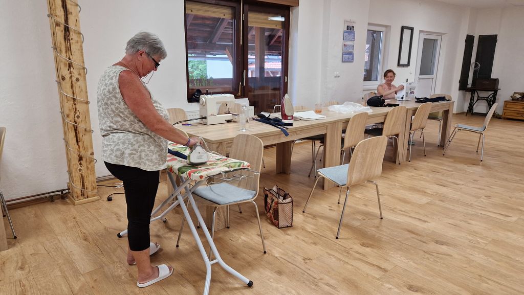 Z Jožico sva ročaje prav spretno polikali, Anita pa jih je z velikim veseljem šivala. Še sama sem se po dolgem času ponovno preizkusila v šivanju na svojem šivalnem stroju. Tako smo vse zašile, saj je bilo samo polovico ročajev.