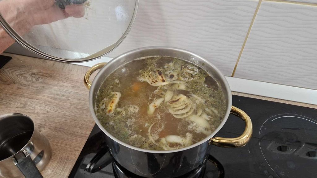 - Kostna juha s čarobno rahlimi zdrobovimi žličniki, ki jih je na svoj poseben način pripravila naša najstarejša članica Rozalija.
