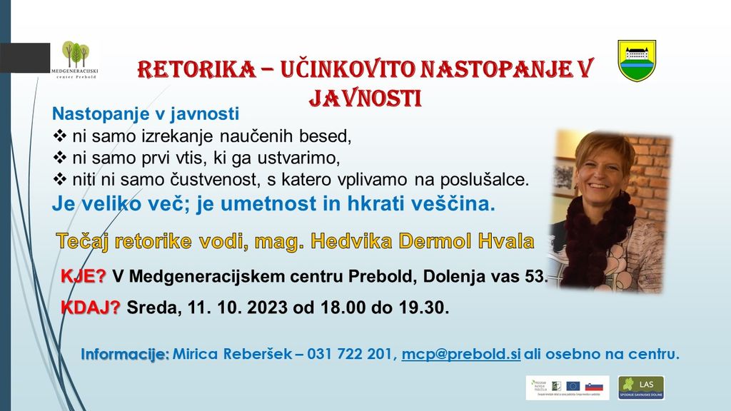 Informacije: Mirica Reberšek - 031 722 201, mcp@prebold.si, ali osebno na centru.