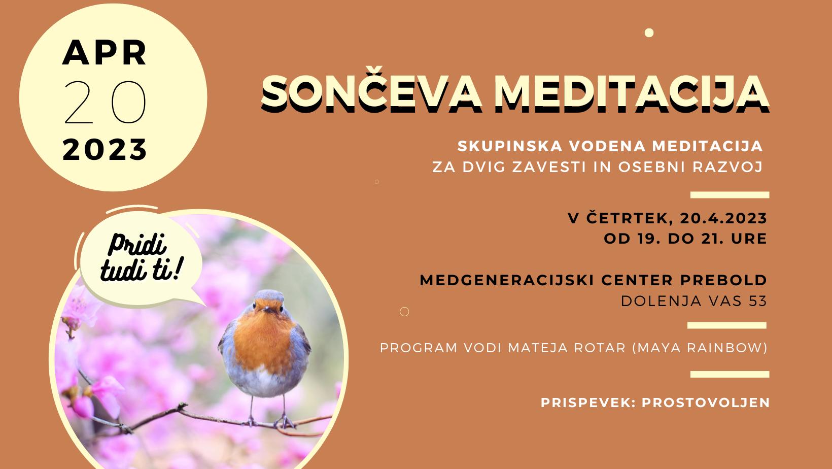 Prijazno vabljeni na aprilsko Sončevo vodeno meditacijo v četrtek, 20.4. 2023 od 19.00 dalje v Medgeneracijski center Prebold.