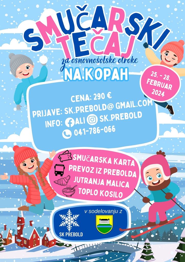 Z veseljem obveščamo, da bomo tudi letos izvedli smučarski tečaj za osnovnošolske otroke na Kopah, v času zimskih počitnic, od nedelje 25.2. do srede 28.2.2024.