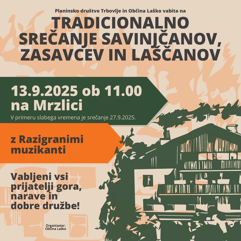 PD Trbovlje in Občina Laško vabita na Tradicionalno srečanje Savinjčanov, Zasavcev in Laščanov na Mrzlico, ki bo 13.9. ob 11. uri (v primeru slabega vremena bo srečanje 27.9.)