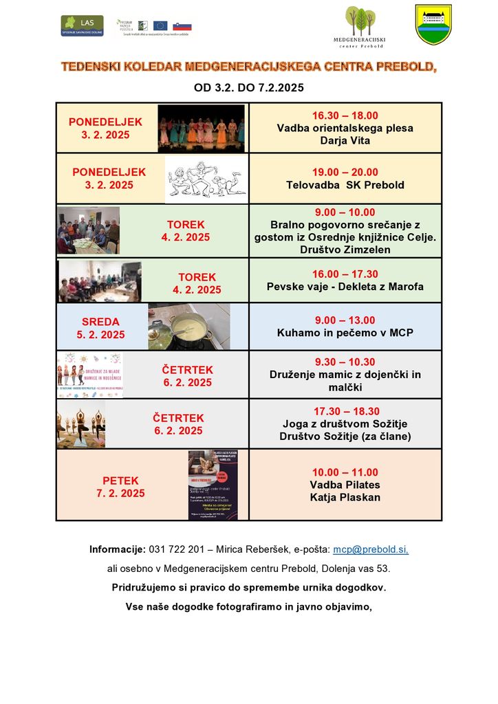 Vsi dogodki potekajo v prostorih Medgeneracijskega centra Prebold,