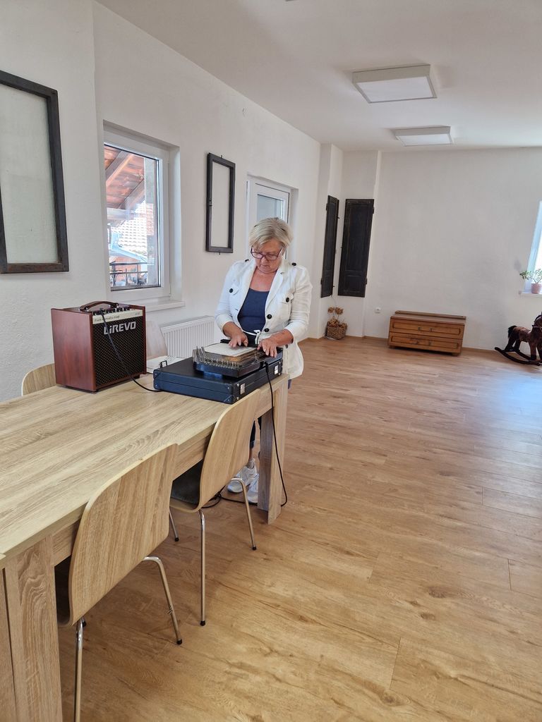 Vsi udeleženci delavnice smo se zagnano lotili kuhanja in ustvarjanja okusnega kosila. Zelo smo se razveselili obiska gospe Slavice Biderman, ki nas je očarala s svojim citrarskim nastopom ter v prostor prinesla pravljično vzdušje.