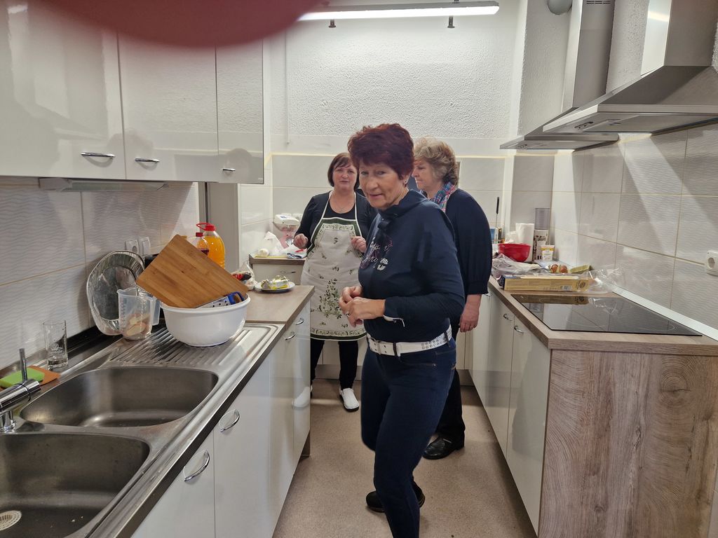 Ta dan je še potekal kuharski tečaj - Kuhamo in pečemo v MCP, kjer so udeleženke kuharske delavnice pripravile listnato testo in dobrote iz njega.