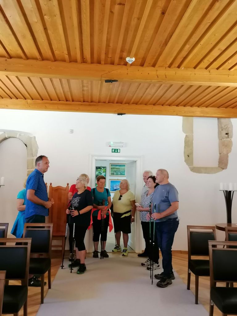 Nato smo se podali na nordijsko hojo, nekateri s palicami, drugi brez, a bistvo je bilo v gibanju. In čeprav je bilo hoditi s palicami veliko lažje, smo vsi uživali v korakih in svežem zraku. Med potjo so nam predstavili nekaj znamenitosti Polzele, a najbolj blesteča je bila nedvomno Komenda, grad, ki krasi ta kraj. Ob vstopu na dvorišče nas je pozdravil antični lev iz prvega stoletja, kot čuvaj zgodovine.