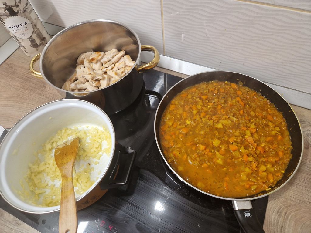Zeliščno juho, piščančji curry z ananasom, riž, solato iz zelja in radiča, za sladico jogurtovo pecivo z grozdjem in seveda ni manjkala kavica.