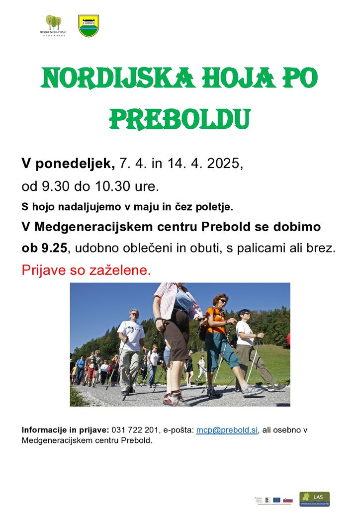 Medgeneracijski center Prebold vas z veseljem vabi na nordijsko hojo!